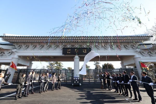 새롭게 준공된 연무문은 높이 10.3m, 너비 34.7m 규모로, 전통 목구조와 궁궐 건축양식을 반영한 철근콘크리트 구조로 설계됐다. 팔작지붕과 전통 한식 기와 방식인 암키와와 수키와를 진흙과 함께 겹겹이 쌓아 올리는 한국 고유의 지붕 시공법을 적용해 품격과 위엄을 동시에 담아냈다.