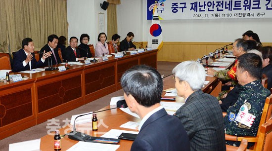 대전시 중구(구청장 박용갑)는 7일 중구청 중회의실에서 재난안전분야 민관협력 활성화를 주제로 ‘중구 재난안전네트워크 간담회’를 개최했다.