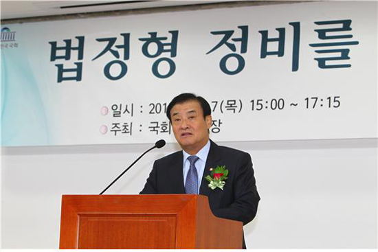 강창희 국회의장은 7일 오후 국회 의원회관 제2소회의실에서 열리는 법정형정비 자문위원회 세미나에 참석, 축사를 통해, “법정형정비를 위해 국회의장 직속 법정형정비 자문위원회를 통해 860여개의 법률을 전수조사했다”면서 “법정형정비를 위한 작업이 이번 정기국회 동안 마무리될 수 있을 것”이라고 밝혔다.