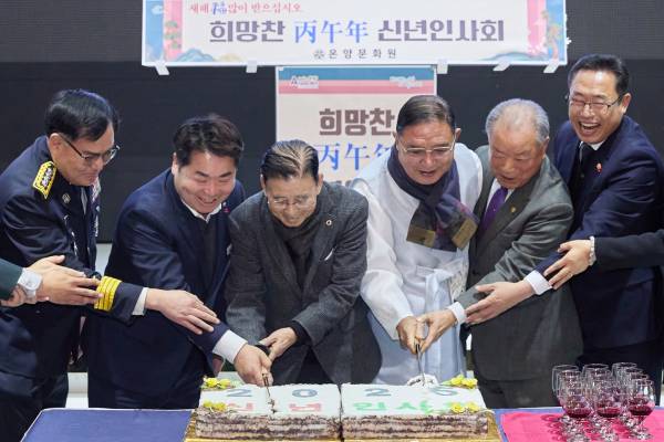 [충청뉴스 유규상 기자] 6일 아산터미널웨딩홀에서 열린 온양문화원(원장 정종호) 주관 ‘2026 신년인사회’에 참석한 주요 기관장들은 “붉은 말의 해인 병오년처럼 활력과 전진의 에너지로 새로운 목표를 향해 힘차게 나아갈 것”을 다짐했다.