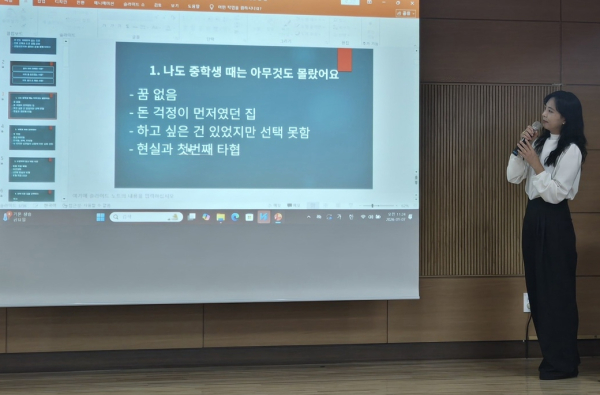 유 대표는 “중학생 뿐만 아니라 고등학생들 역시 진로에 대한 고민이 깊은 시기”라며, “기회가 된다면 고등학생들을 대상으로도 자신의 경험을 바탕으로 진로 이야기를 나누고 싶다”는 의지를 표명했다.
