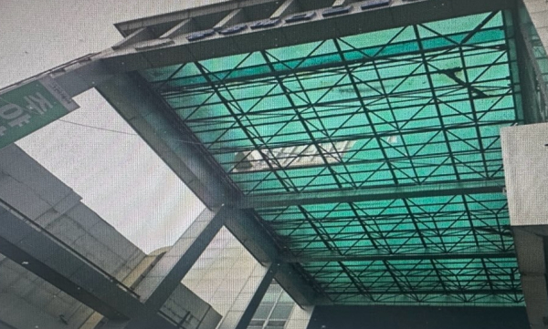 메디컬 빌딩 옥상 비가림시설 부분 파손(사진=재대본부 제공)