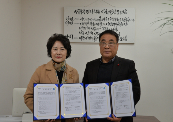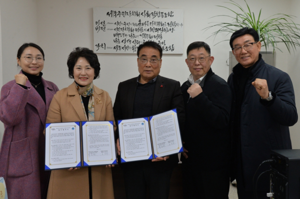 양 기관은 15일 세종시 집현북로 소재 사회적기업공간 102호에서 박종권 이사장과 도정자 회장을 비롯해 이항선 상임이사, 신동익 이사, 김지영 사무국장 등 주요 관계자들이 참석한 가운데 업무협약(MOU) 체결식을 가졌다.