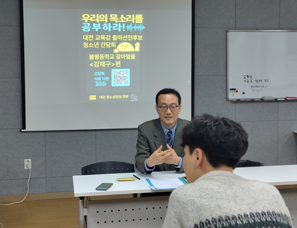[충청뉴스 이성현 기자] 대전교육감 선거에 출마한 강재구 건양대 의과대학 교수가 대전 청소년 모임 한밭과 청소년 현안에 대한 의견을 청취했다고 19일 밝혔다.