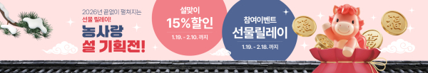 [충청뉴스 박영환 기자] 충남경제진흥원은 농특산물 온라인 쇼핑몰 ‘농사랑’에서 1월 19일부터 2월 10일까지 ‘2026년 설 특별 기획전’을 개최한다고 밝혔다.
