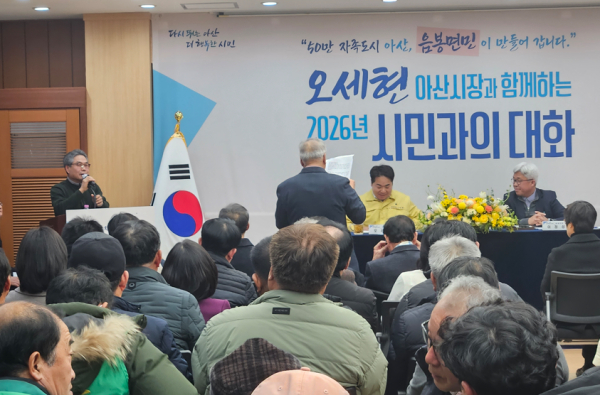 [충청뉴스 유규상 기자] 아산시(시장 오세현)는 지난 2일 음봉면 행정복지센터에서 ‘2026 시민과의 대화’를 열고, 지역 현안에 대한 주민 의견을 청취했다.