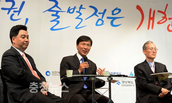이국운 한동대 교수는 발제에서 “60여년 동안 지속된 중앙집권적 관성이 아직까지도 우리사회를 지배하고 있다”며 “성장·개발 중심의 중앙집권 사회에서 분배·복지 중심의 지방분권 사회로의 변화는 헌법 개정을 통해서만 실현가능할 것”이라고 강조하고, “대한민국의 안정적 재통일을 감안한다면 지금 시점에서 지방분권을 위한 원포인트 개헌을 통해 연성적 분권국가로 나아가야 한다”고 말했다.