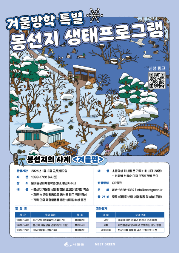 한편, 이번 생태프로그램은 2월까지 계속 운영되며, 참가를 희망하는 가족은 홍보 포스터의 QR코드를 통해 신청할 수 있다.