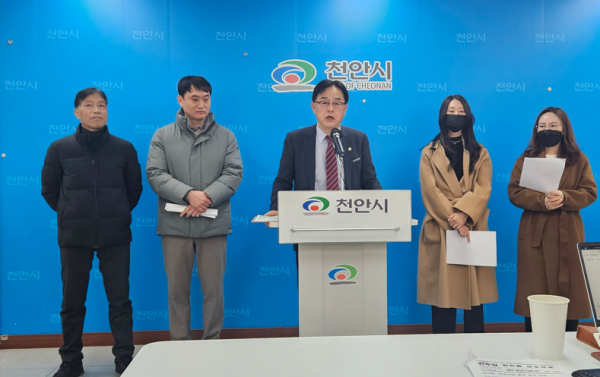 [충청뉴스 유규상 기자] 장혁 천안시의원(불당동.무소속)은 9일 천안시청 브리핑실에서 기자회견을 갖고 불당2동의 과밀학급 재난 사태를 근본적으로 해결하고, 급변하는 인구 구조에 유연하게 대응할 수 있는 천안시 불당동 ‘가+나 부지 통합형 복합 에듀타운’ 건립을 공식 제안했다.