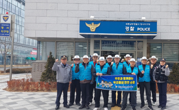 세종시 청사지구대(지구대장 경감 김원동)는 11일 나성동 일대에서 전직 경찰관들로 구성된 ‘시니어폴리스’와 함께 설 명절 특별 범죄예방 캠페인을 실시했다.