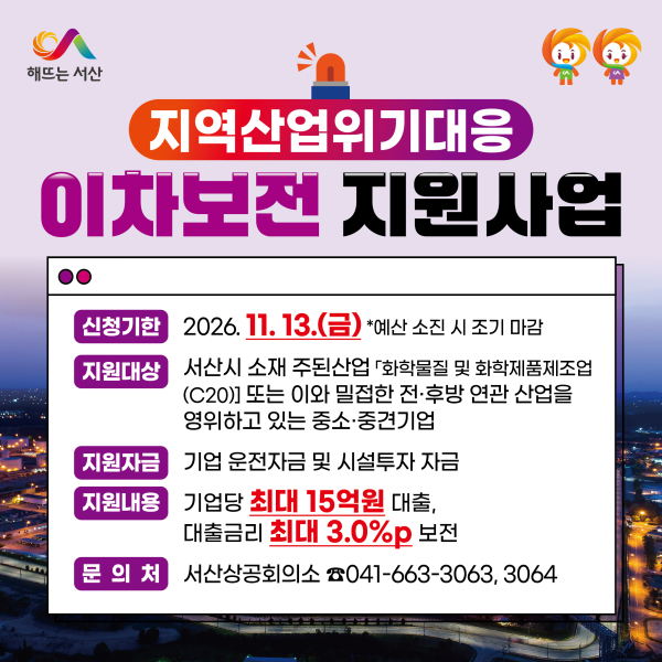 [충청뉴스 박영환 기자] 충남 서산시가 ‘2026년 지역산업위기대응 이차보전 지원사업’을 본격 추진한다고 26일 밝혔다.