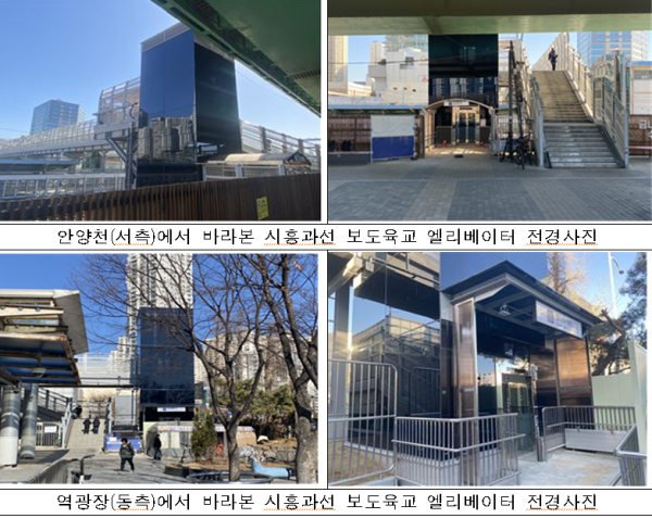 [충청뉴스 최형순 기자] 국가철도공단 GTX본부는 경부선 금천구청역 시흥과선 보도육교 24인승 엘리베이터 2대 신설 공사를 완료하고 28일 개통했다고 밝혔다.