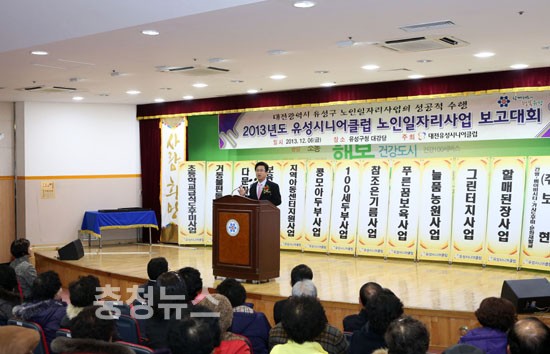 유성구(구청장 허태정)는 지난 6일 구청 대강당에서 노인일자리사업 참여자 등 200여 명이 참석한 가운데 올해 사업을 평가하고, 내년 사업을 구상하는 ‘2013 노인일자리사업 평가회’를 가졌다.