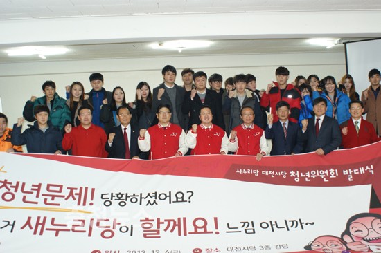 새누리당 대전시당 청년위원회(위원장 송인석)는 지난 6일 당사 3층 강당에서 ‘청년문제! 당황하셨어요? 그거 새누리당이 할께요! 느낌아니까~’라는 주제로 청년위원회 발대식을 가졌다.