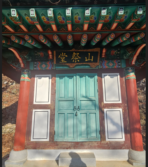 제사 당일에는 저녘에 어둠이 시작되는 해질 무렵에 제주와 축관(축문을 읽는 사람)과 한 두사람이 올라가서 제사를 올리는데 금년도에는 마을 형편을 고려하여 참여가 용이한 오후 2시 정도 마을 산신각에 올라가 제사를 지냈다.