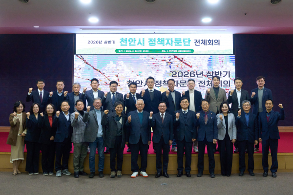 [충청뉴스 유규상 기자] 천안시는 12일 시청 대회의실에서 ‘2026년 상반기 정책자문단 전체회의’를 개최하고 2026년 3대 핵심가치인 성장·안전·동행의 실현을 위한 주요 정책 추진 현황을 공유하며, 실효성 있는 시정 발전 방향을 모색했다.