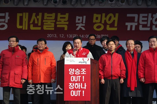 박성효 국회의원은 인사말 및 규탄사를 통해 “최근 북한은 장성택 등 고위당직자들을 공개 처형하는 등, 대북정세가 매우 위험한 상황에 이르렀다”며, “현재의 위기상황을 해결하기 위해 여야가 서로 협력해야 한다”고 강조하면서 “민주당은 더 이상 국론을 분열시키는 망언 등의 정치행태를 중단하라”며 민주당의 대선불복 및 망언에 대해 비판했다.
