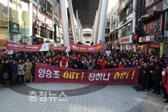새누리당 대전광역시당은 지난 13일 오후 2시, 은행동 으능정이거리에서 민주당 대선불복 및 양승조, 장하나 의원의 망언에 대한 규탄을 결의하는 행사를 가졌다.
