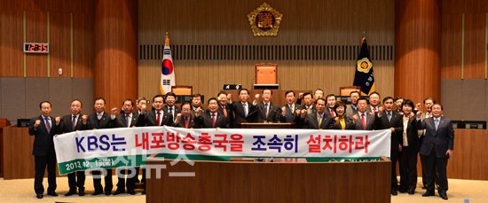 충남도의회는 19일 열린 제266회 정례회(제5차 본회의)에서 “KBS내포방송총국 조기설치 촉구 결의안”을 채택했다. 결의안은 유기복 의원(홍성, 새누리당)의 대표발의로 김용필, 김기영, 명성철, 고남종, 이종화 의원이 공동발의 했다.