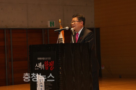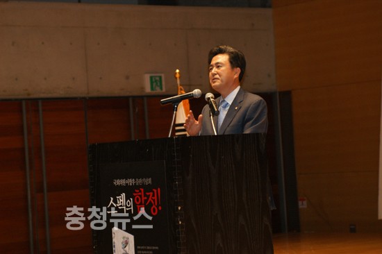 ▲ 김태흠 국회의원이 축사를 하고 있다.