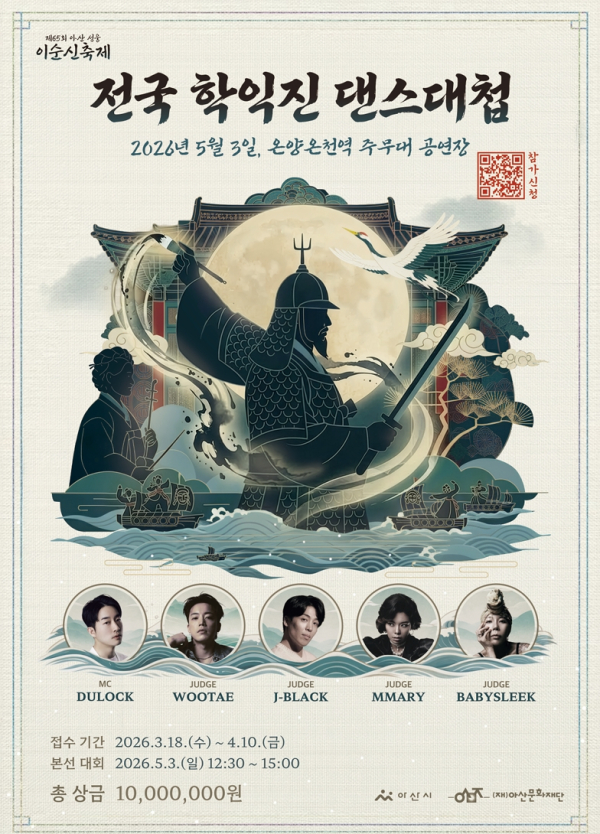 [충청뉴스 유규상 기자] 아산시와 (재)아산문화재단은 「제65회 아산 성웅 이순신축제」 기간 중 개최되는 ‘전국 학익진 댄스대첩 경연대회’ 참가팀을 지난 18일부터 오는 4월 10일까지 모집한다.