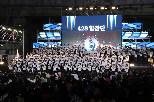 ‘428합창단’은 시민이 직접 참여해 만들어가는 대표적인 참여형 축제 콘텐츠로, 매년 수백 명의 시민이 함께 무대에 올라 지역 공동체의 화합을 이끌어왔다. 특히 ‘428’이라는 명칭은 충무공 이순신 장군의 탄신일(4월 28일)을 의미한다.