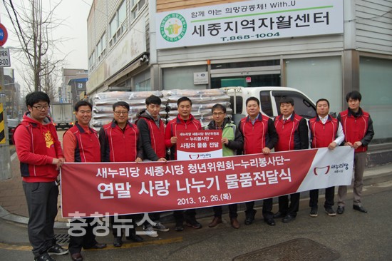 새누리당 세종시당(위원장 김고성)은 26일 오후 세종시 조치원읍 남리에 위치한 세종지역자활센터를 찾아 연말 어려운 이웃과 함께하기 위해 사랑의 쌀 나누기 봉사활동을 진행했다.