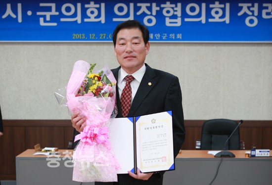 계룡시의회 이재운 의장이 27일 태안군의회에서 열린 충남시·군의회의장협의회 정례회에서 전국시·군·자치구의회의장협의회에서 수여하는 ‘지방의정봉사상’을 수상했다.