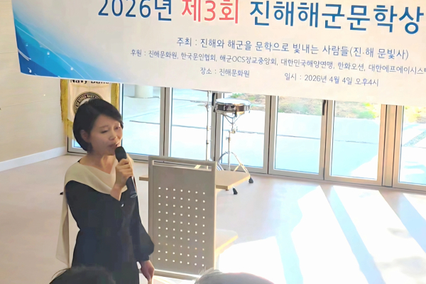 진해군항제 기간 중 개최된 이번 시상식은 ‘진해와 해군을 문학으로 빛내는 사람들(회장 신기남)’이 주관하는 행사로, 해군 OCS 92기 출신 최해욱 작가의 장편소설 <마지막 파도>가 당선작으로 선정되어 화제를 모았다.