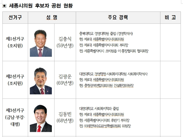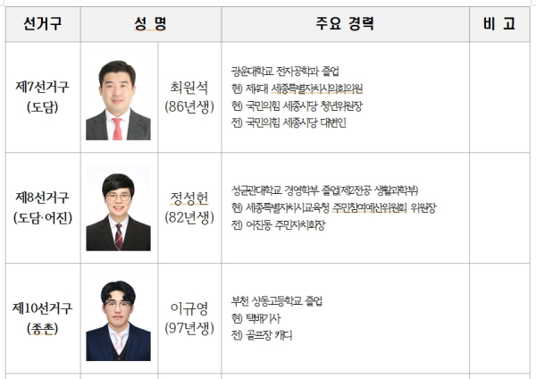 국민의힘 세종시의원 후보 추가 공천 … “17개 지역구 공천 완료”