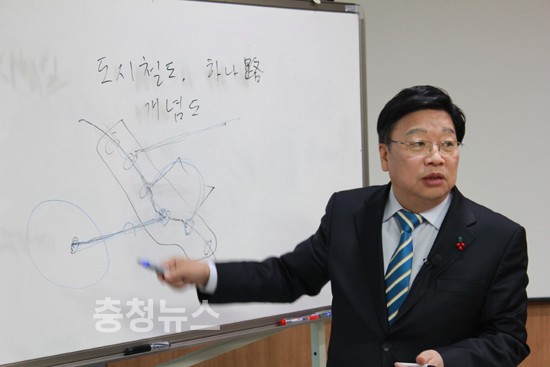 권 전 의원은 “하나로는 교통소외지역인 대덕구, 신탄진 지역을 연결하기 위해 1호선의 대동역에서 법동과 중리동, 조차장, 신탄진 등을 지나는 노선을 만들고 인구과밀지역인 관저와 테크노밸리는 서대전역 등에서 유천과 도마를 거쳐가는 방식”이라고 설명했다.