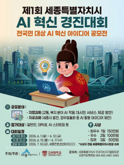 [충청뉴스 최형순 기자] 세종시가 인공지능(AI)을 활용한 행정 혁신과 도시문제 해결을 위해 ‘제1회 세종시 AI 혁신 경진대회’를 개최한다.