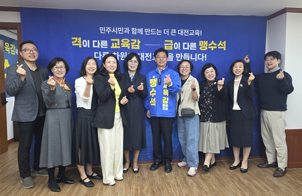 [충청뉴스 이성현 기자] 맹수석 대전교육감 예비후보가 15일 대전사립유치원연합회와 간담회를 열고 유아교육 현장을 살리기 위한 정책 대안 마련에 나섰다.