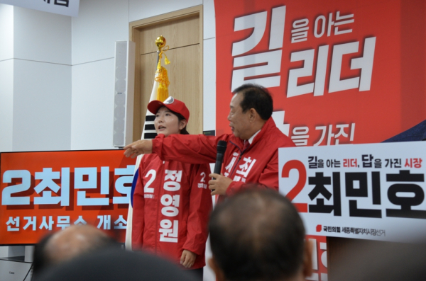 또한 새롬동에는 한민정 교육전문가 세종시교육협회 회장, 집현동에는 청년 정영원 사회복지전문가, 도담, 어진에는 교육전문가 정성헌 후보와 함께 한다.