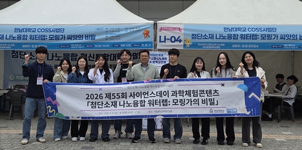 [충청뉴스 이성현 기자] 한남대학교는 첨단소재나노융합 혁신융합대학(COSS)사업단이 제55회 사이언스데이 현장에서 국립중앙과학관과 손잡고 첨단 소재 기술을 직접 경험할 수 있는 과학체험 부스를 운영했다고 20일 밝혔다.