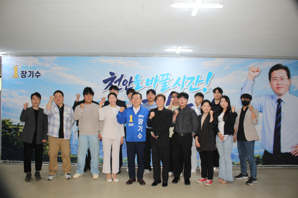 [충청뉴스 유규상 기자] 장기수 더불어민주당 천안시장 예비후보는 23일 오후 2시 선거사무소에서 청년기업인 대표 19인과 간담회를 열었다.