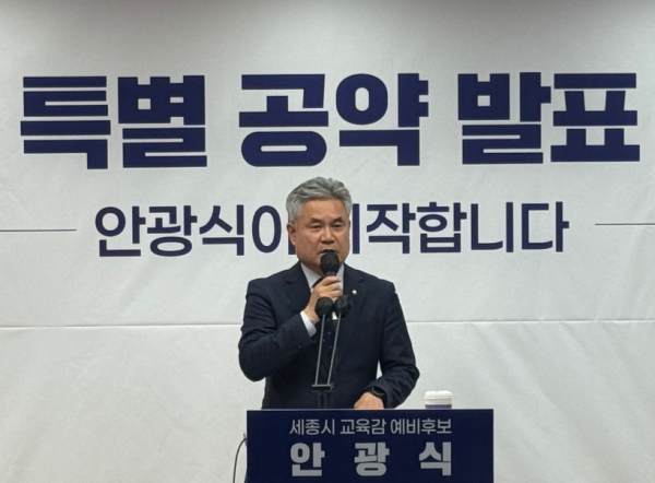 [충청뉴스 최형순 기자] 세종시교육감 예비후보 안광식은 지난 23일 세종시청 브리핑룸에서 기자회견을 열고, 세종시의 지속가능한 교육 발전과 미래 인재 양성을 위한 핵심 특별공약으로 ‘세종국제영어마을’ 조성 계획을 공식 발표했다.