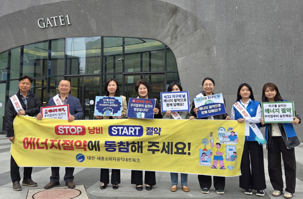 [충청뉴스 최형순 기자] 소비자공익네트워크(대표 도정자)가 제56회 지구의 날을 맞아 지난 4월 22일, 대전 갤러리아타임월드 인근을 비롯한 전국 9개 주요 거점에서 ‘우리집 전기 절약 챌린지’ 오프라인 캠페인을 일제히 전개했다.