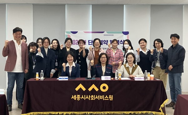 [충청뉴스 최형순 기자] (재)세종시사회서비스원(원장 이기순) 산하 아이돌봄서비스제공기관(센터장 김지현)이 지난 23일, 공공&돌봄노동조합과 단체협약을 체결하며 아이들과 돌봄 노동자가 함께 행복한 세상을 향한 첫걸음을 내디뎠다.