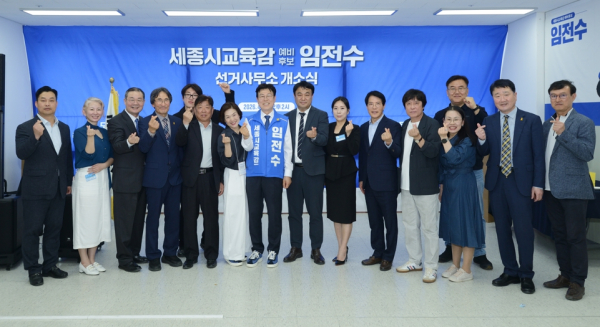 [충청뉴스 최형순 기자] 세종특별자치시 교육감 선거에 나선 임전수 예비후보의 선거사무소 개소식이 25일, 시민들의 뜨거운 열기 속에 성대하게 열렸다.