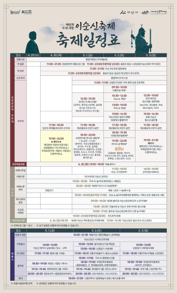 성웅 이순신 축제 일정표