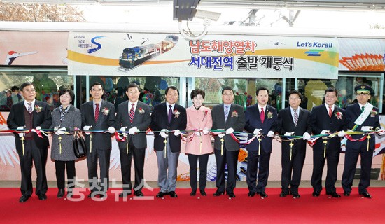 염홍철 대전시장이 지난 11일 오전 서대전역에서 열린 ‘S트레인 남도해양열차’ 개통식에 참석했다.