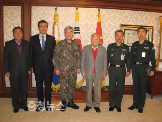 이인구 계룡건설 명예회장(13∙15대국회의원, 6.25참전 예비역 육군 중령)은 17일 오전 육군본부를 방문해 권오성 육군참모총장에게 ‘예비역 설 명절 위문금’ 1000만원을 전달했다.
