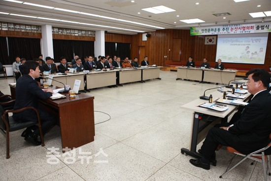 논산시(시장 황명선)는 21일 시청 회의실에서 논산지역 25개 공공기관과 민간단체가 참여해 ‘안전문화운동추진 논산시협의회’를 구성, 출범식을 갖고 안전한 논산시 만들기에 본격 시동을 걸었다.
