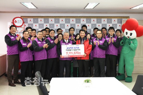 (주)금성백조주택이 24일 오전 대전 사회복지 공동모금회(회장 김형태)를 통해 7백여만원을 전달하며 사랑의 온도탑을 높였다.