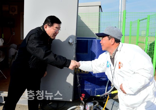 ▲ 김석환 홍성군수가 28일 서부면 궁리에 설치된 AI방역초소를 방문해 방역활동을 점검하고 있다.