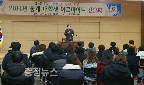 천안시는 5일 시청 대회의실에서 한달간 시정을 직접 체험한 동계 대학생 아르바이트 참여자를 대상으로 간담회를 실시했다.
