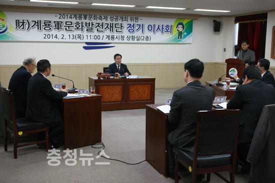 재)계룡軍문화발전재단(이사장 이기원)은 13일 시청 상황실에서 재단 임원 및 축제 관계자 등 15여명이 참석한 가운데 정기이사회를 개최했다.
