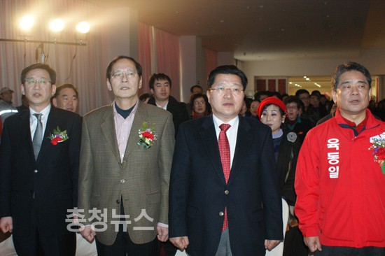 ▲ 육동일 교수, 진동규 유성 당협위원장, 새정치연합 김창수 전의원, 김태훈 중구청장 출마자