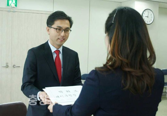 이어 오전 9시, 대덕구 선거관리위원회를 방문해 대덕구청장 후보 중 가장 먼저 예비후보로 등록했으며, 등록 직후에는 대덕구청을 방문해 구청직원들과 인사를 나눴다.